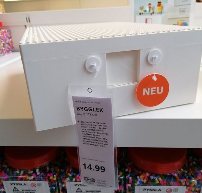 Les boîtes, au design blanc et épuré, sont également dotées d’une petite fenêtre personnalisable à l’avant pour identifier ce qu’elles contiennent. Si l’on ne possède pas de Lego, un kit de démarrage BYGGLEK LEGO IKEA sera disponible et contiendra 201 briques dont 2 figurines.
